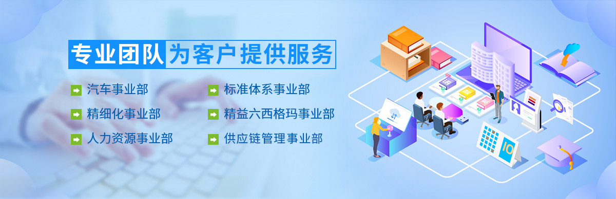 集團下屬業(yè)務劃分為:汽車事業(yè)部、標準體系事業(yè)部、供應鏈管理事業(yè)部、精細化事業(yè)部、精益六西格瑪事業(yè)部、人力資源事業(yè)部6大事業(yè)部,專業(yè)為客戶提供各個領域的專業(yè)服務。